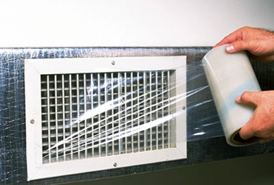 A duct leakage testing begins by sealing all the ducts and registers with duct mask tape on both the supply and return side.