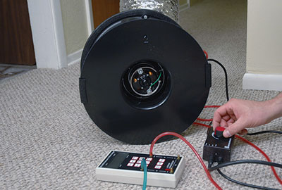 The calibrated fan is used in combination with a pressure sensor to track air leakage in your ductwork without having to disturb or damage property. A duct leakage test, also known as a duct blaster test, will tell you where your ducts are leaking air and inform you on the best approach for sealing it.
